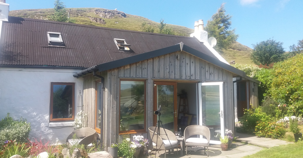 Climbing, walking and sight-seeing are all available on the doorstep. Wildlife is all around you. From the Sun-room you can watch Seals laze on a rock at the water’s edge, using our 80mm Monocular. When you are out, always keep an eye out for a glimpse of an Otter, a Golden Eagle, or even a Sea Eagle. The deserted shore of Loch Sligachan, ideal for beach combing is a short stroll. A sandy beach ideal for swimming and picnics is also within easy reach, approximately a 20 minute walk.